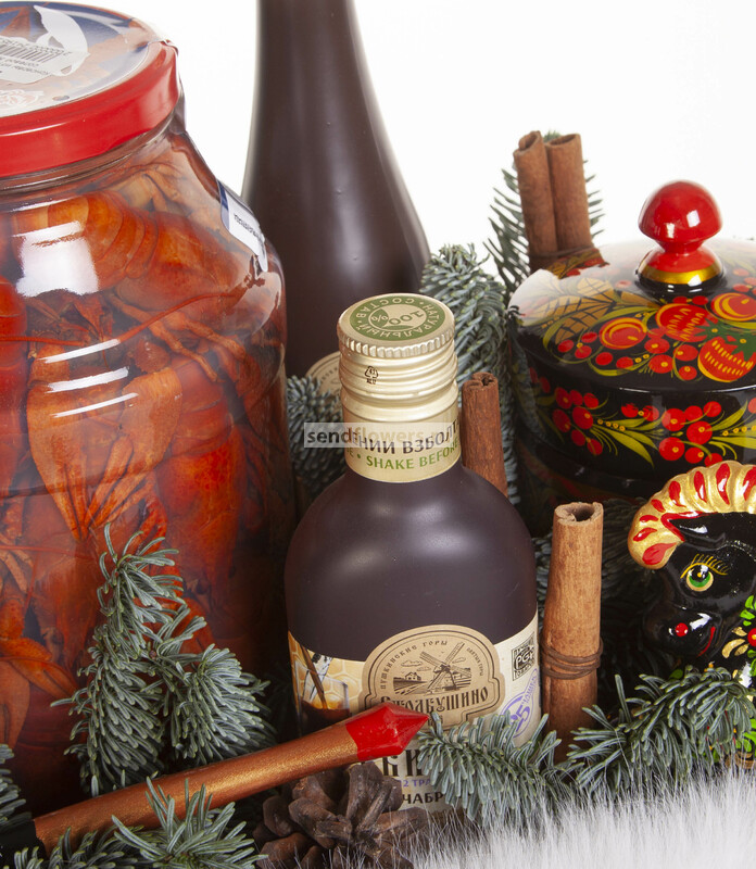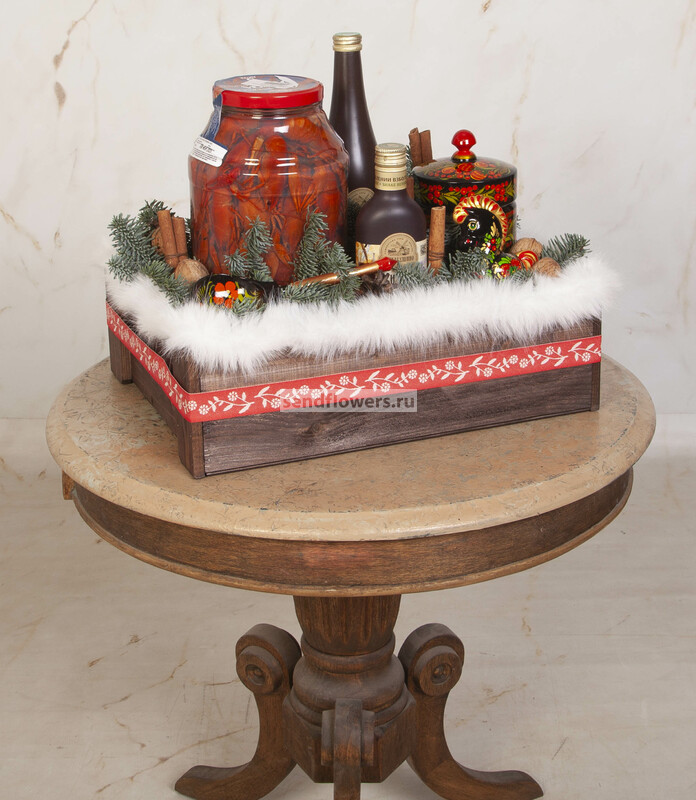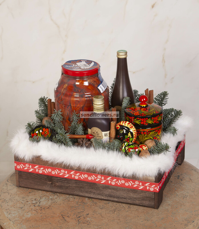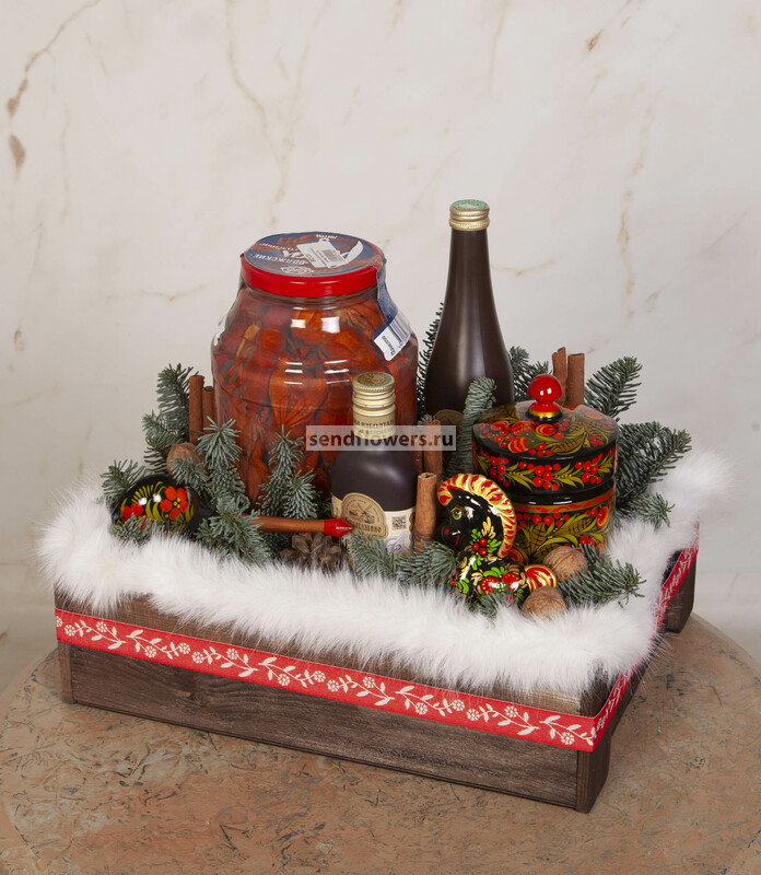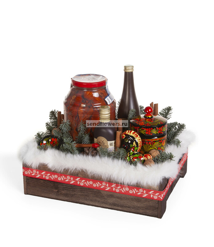 Состав: Оазис кирпич (5), Лапник (2), Лента натуральная (10), Шишка натуральная (5), Корица (8), Ящик 30х40 (дерево), состаренный (1), Грецкий орех (5), Шоколадные конфеты "Красная шапочка" (10), Шоколадные конфеты "Кара-Kум" (10), Шоколадные конфеты "Аленка" (10), Консервы из раков волжских в солевой заливке 3л (1), Сбитень "Столбушинский" С чабрецом 250 мл. стекло (1), Сбитень "Столбушинский" С чабрецом 500 мл. стекло (1), Ложка пб чернушка (1), Поставок (1), Искусственный мех сибирской норки (1), ГЛ- 956 Фигурка 'Лошадка-Буран' хохлома (Гжельский фарфор) (1)