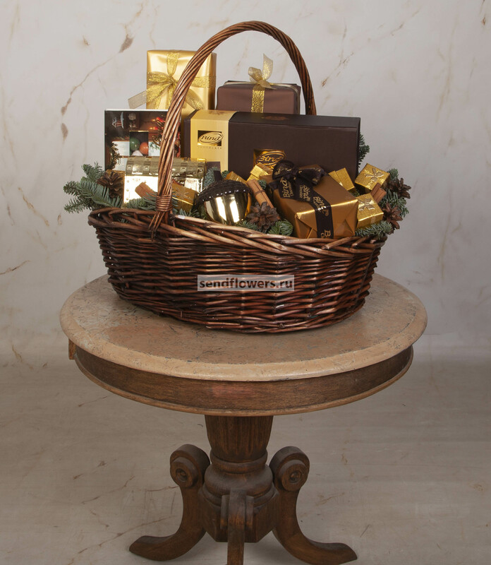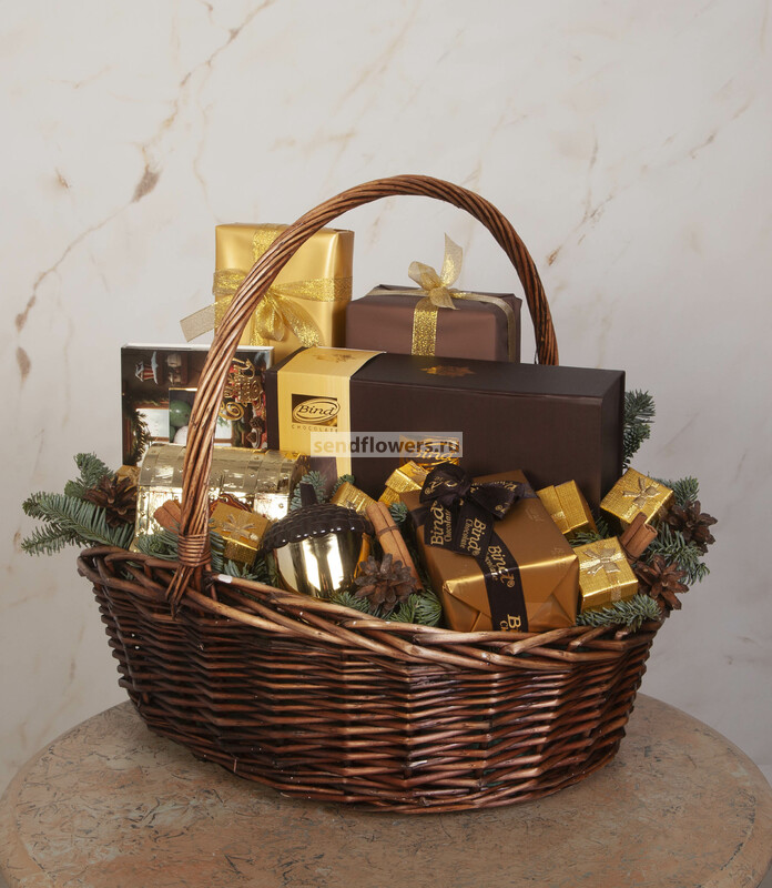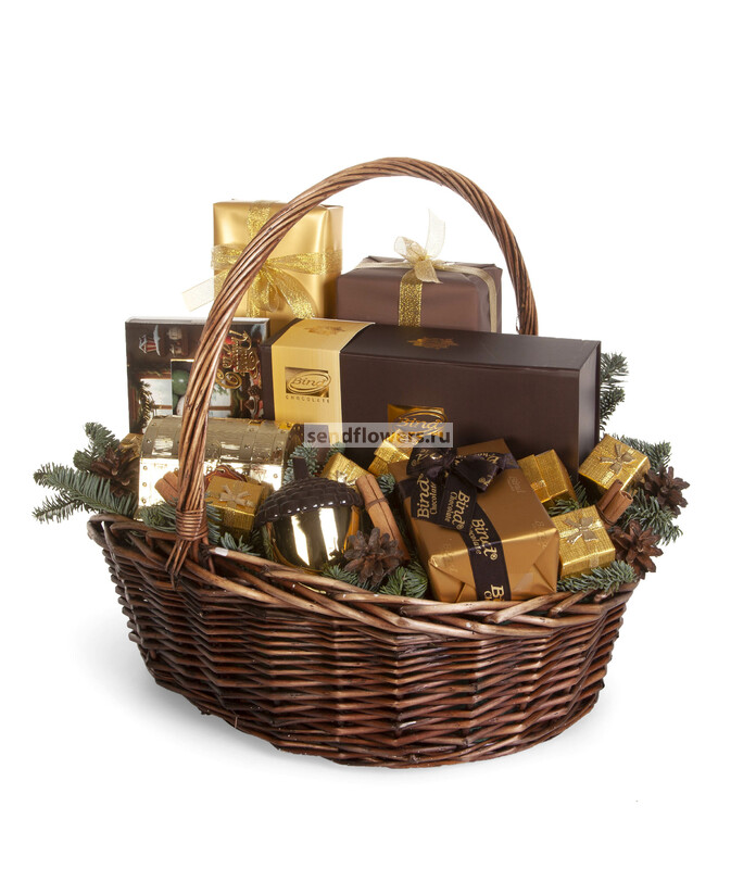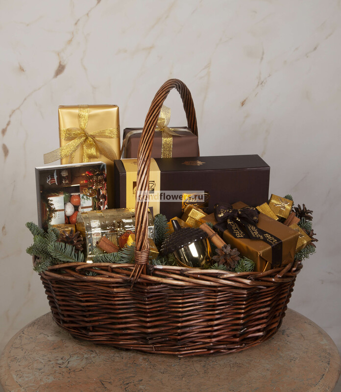 Состав: Оазис кирпич (7), Лапник (3), Лента натуральная (5), Шишка натуральная (7), Корица (3), Лента натуральная (декоративная) (5), Корзина большая (1), Коробочка картон мини (6), Пленка матовая (3), Набор шоколадных конфет "Шкатулка" (1), Набор шоколадных конфет "Золото" (1), Шоколадное драже "Перепелиные яйца", 100гр (1), ПОДСТАВКА ПОД ЛОЖКУ КОЛЛЕКЦИЯ "CHRISTMAS GIFT" 25.6X10.7X3.3 СМ (1), aT-36/2 Драже миндаль карамелизованный 'Лесное лукошко', 60 г (1), gYP-03/1-G Фигурка гипсовая 'Лошадь Стелла' (1), aT-23/1 Конфеты "Остров сокровищ" тёмный шоколад, 140 г (1)