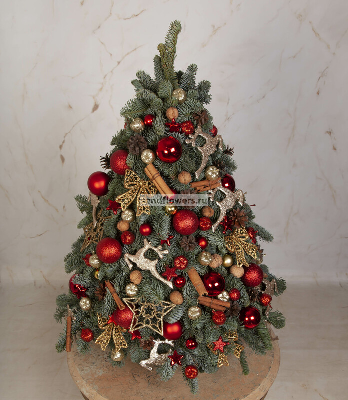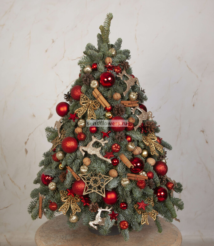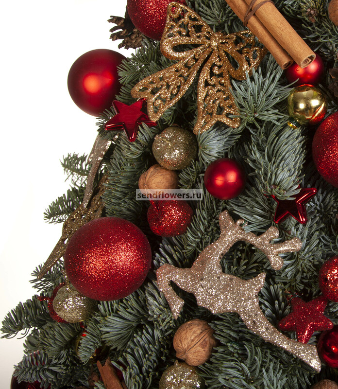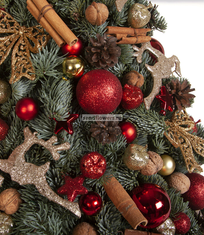 Состав: Оазис кирпич (50), Лапник (50), Шар новогодний стандартный (пластик) (55), Шарики-мини (пластик) (120), Яблоки декоративные (84), Шишка натуральная (60), Корица (60), Звезды, ёлочки декор на вставке (блест.) (60), Грецкий орех (70), Кашпо пластик 12л (1), Ёлочное украшение "Олень" (30), Ёлочное украшение "Звезда" (15), Новогоднее подвесное елочное украшение Бантик золотой из полипропилена (25)