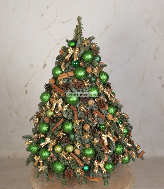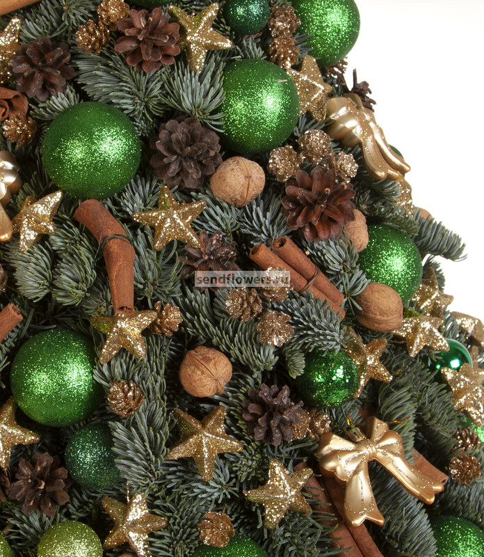 Состав: Оазис кирпич (5), Лапник (5), Шар новогодний стандартный (пластик) (20), Шарики-мини (пластик) (20), Шишка натуральная (20), Шишки декор на вставке в ассорт. (блест/заснеж.) (36), Кашпо (пластик) (1), Корица (20), Звезды, ёлочки декор на вставке (блест.) (40), Грецкий орех (20), Новогоднее подвесное украшение из полистирола Бант золотой (10)