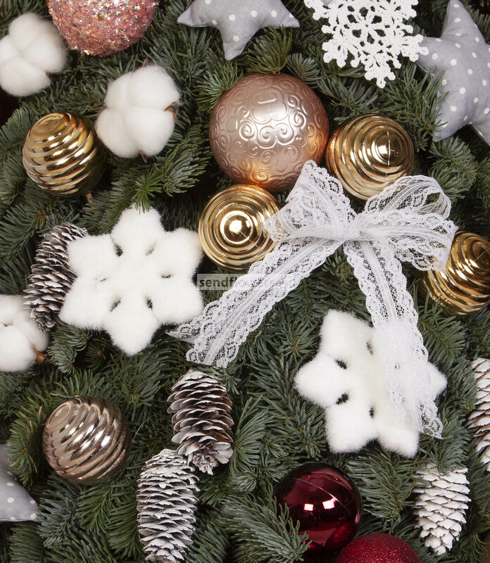 Состав: Оазис кирпич (50), Лапник (50), Шар новогодний стандартный (пластик) (70), Хлопок (45), Шишка натуральная (40), Лента натуральная (декоративная) (40), Новогодний шар "Воздушные хлопья" розовый (13), Украшение ёлочное "Сахарное" (26), Кашпо пластик 12л (1), Вязаные снежинки (11), Шитая игрушка "Звёздочка" (серая) (18)